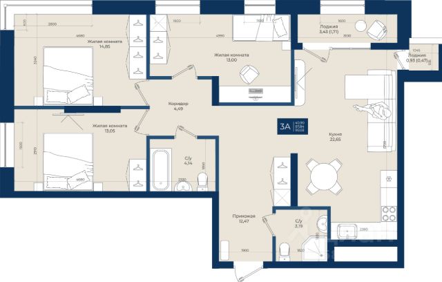 В квартире 2 санузла и 2 отдельные комнаты для личного пространства всех членов семьи, функциональная прихожая с вместительными нишами под гардеробную.