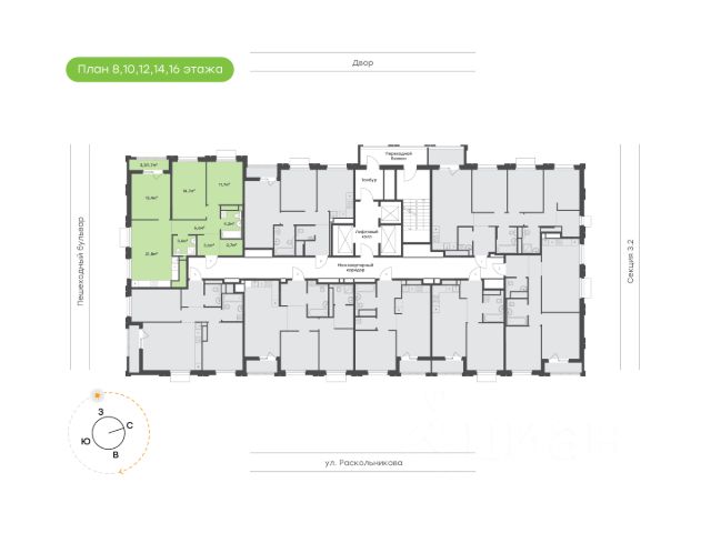 Квартира на 3 стороны света Увеличенная кухня-гостиная с 2 окнами и французским балконом на ряде этажей Мастер-спальня с собственным санузлом, гардеробной и лоджией для дополнительного шумоподавления звуков с улицы Детские расположены в приватной части квартиры в удалении от кухни-гостиной и комнаты родителей Кабинет для тех, кому важно организовать рабочее пространство дома Гардеробная Просторная прихожая с возможностью размещения шкафа Высота потолка 2,7 м Улучшенная предчистовая отделка 5 квартир на этаже