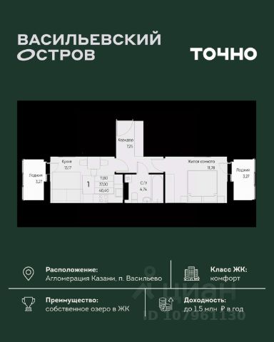 • ✓ В базе Циан 1 3-комнатных квартир на 15 этаже в Зеленодольском районе республики Татарстан