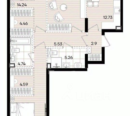 Продаётся 3-комнатная квартира в строящемся доме (Корпус 2), срок сдачи: I-кв. 2029, общей площадью 75.1 кв.м., на 5 этаже.