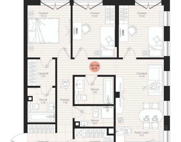Общая площадь квартиры 155 кв.м. Просторная кухня-гостиная 50 кв.м., спальня с двумя окнами 40 кв.м. и большой гардеробной, спальня 20 кв.м. с выходом на просторную лоджию с панорамным остеклением, два сан узла, гостевой и основной с ванной, душевой кабинкой и комнатой-прачечной. В квартире дизайнерский ремонт, в отделке использованы качественные и добротные отделочные материалы, мраморные подоконники, плитка итальянская с подогревом, паркетная доска, коллекционные обои, декоративная штукатурка, мебель по индивидуальному заказу.
