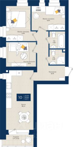 Продаётся 3-комнатная квартира в строящемся доме (дом 2), срок сдачи: III-кв. 2026, общей площадью 60.71 кв.м., на 2 этаже.