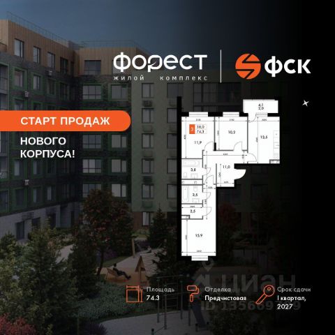Прямая продажа от застройщика! Корпус 1.1 сдан! Жилой Комплекс комфорт-класса. Продаётся 3-к квартира номер 70 общей площадью 74.3 кв.м. на 2-м этаже 6 этажного здания. Предчистовая отделка. Цена с учётом скидки. Особенности квартиры: Квартира с предчистовой отделкой (White box). Вам не придется заниматься черновыми и трудоёмкими работы, а чистовую отделку и дизайн - сделайте на свой вкус. Информация о комплексе: "Форест" - жилой комплекс комфорт-класса, созданный для тех, кто ищет гармонию с природой, не отказываясь от городского ритма. Расположенный в окружении леса и реки, он воплощает мечту о загородной жизни со всеми удобствами города. Здесь можно проживать самые тёплые моменты с близкими, дышать свежим хвойным воздухом, встречать утро на собственной террасе или проводить вечера с друзьями под открытым небом. Благоустроенная территория, прогулочные дорожки и зоны отдыха создают атмосферу уюта и гармонии. Поблизости - лес и Волга, куда можно выбраться на прогулку в любое время, не дожидаясь выходных. Благодаря вечнозелёным растениям и продуманному озеленению, дворы остаются зелёными круглый год. Транспортная доступность: - 4 мин. пушком до автобусной остановки - 5 мин. на машине до школы Внутренняя инфраструктура: Продуманное пространство для жизни, отдыха и развития. На территории комплекса работает собственный детский сад - современное и безопасное пространство, где дети всегда рядом с родителями. Во дворе установлены игровые комплексы для активных прогулок и развития малышей на свежем воздухе. Жителям доступны кафе и магазины, площадки для прогулок с питомцами, зоны для пикников и барбекю. Для любителей активного образа жизни предусмотрены велодорожки, воркаут-зоны и тропы для хайкинга, а в шаговой доступности находятся планетарий и глэмпинг. Просторный двор без машин и закрытая территория с системой контроля доступа обеспечивают высокий уровень безопасности и приватности. Здесь можно по-настоящему расслабиться и чувствовать себя дома - в окружении природы, комфорта и заботы о каждом дне.
