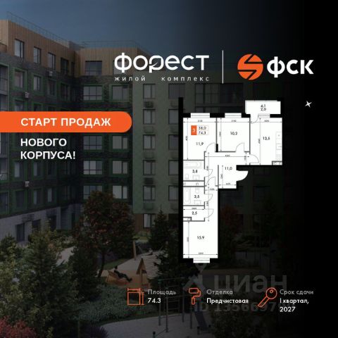 Прямая продажа от застройщика! Корпус 1.1 сдан! Жилой Комплекс комфорт-класса. Продаётся 3-к квартира номер 70 общей площадью 74.3 кв.м. на 2-м этаже 6 этажного здания. Предчистовая отделка. Цена с учётом скидки. Особенности квартиры: Квартира с предчистовой отделкой. Вам не придется заниматься черновыми и трудоёмкими работы, а чистовую отделку и дизайн - сделайте на свой вкус. Информация о комплексе: "Форест" - жилой комплекс комфорт-класса, созданный для тех, кто ищет гармонию с природой, не отказываясь от городского ритма. Расположенный в окружении леса и реки, он воплощает мечту о загородной жизни со всеми удобствами города. Здесь можно проживать самые тёплые моменты с близкими, дышать свежим хвойным воздухом, встречать утро на собственной террасе или проводить вечера с друзьями под открытым небом. Благоустроенная территория, прогулочные дорожки и зоны отдыха создают атмосферу уюта и гармонии. Поблизости - лес и Волга, куда можно выбраться на прогулку в любое время, не дожидаясь выходных. Благодаря вечнозелёным растениям и продуманному озеленению, дворы остаются зелёными круглый год. Транспортная доступность: - 4 мин. пушком до автобусной остановки - 5 мин. на машине до школы Внутренняя инфраструктура: Продуманное пространство для жизни, отдыха и развития. На территории комплекса работает собственный детский сад - современное и безопасное пространство, где дети всегда рядом с родителями. Во дворе установлены игровые комплексы для активных прогулок и развития малышей на свежем воздухе. Жителям доступны кафе и магазины, площадки для прогулок с питомцами, зоны для пикников и барбекю. Для любителей активного образа жизни предусмотрены велодорожки, воркаут-зоны и тропы для хайкинга, а в шаговой доступности находятся планетарий и глэмпинг. Просторный двор без машин и закрытая территория с системой контроля доступа обеспечивают высокий уровень безопасности и приватности. Здесь можно по-настоящему расслабиться и чувствовать себя дома - в окружении природы, комфорта и заботы о каждом дне.