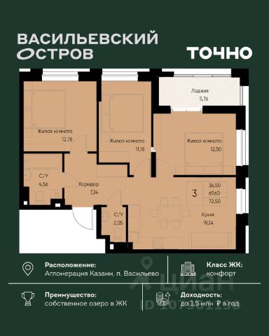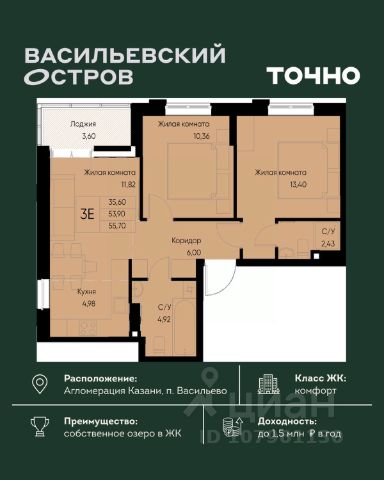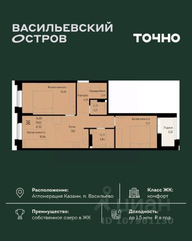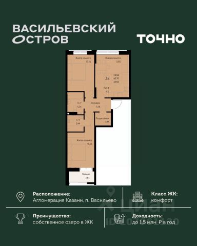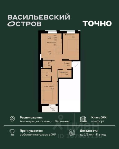 ЖК "Васильевский остров" — масштабный проект ТОЧНО в Казанской агломерации. Просторная территория 88 Га спроектирована для комфортной жизни: озеро с набережной и пляжем, каток, зелёные маршруты. В проекте комплекса — школа на 1 224 места, 2 детских сада на 680 мест, детская и взрослая поликлиники, фитнес-центр с бассейном, термальный комплекс, фермерский рынок, магазины, кафе и рестораны.