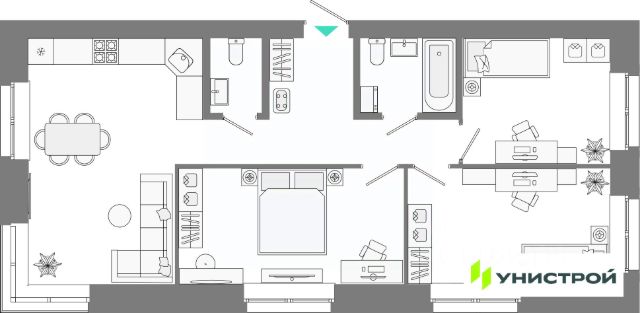 Q на Кулагина Жилой комплекс от компании "Унистрой" расположен в Приволжском районе Казани, на улице Кулагина, в активно застраиваемой и развивающейся части города. "Q на Кулагина" включает дома переменной высотности 9-20 этажей, фасады с подсветкой, дворы-парки с сенсорными садами, холлы и подземный паркинг с лифтом. Предлагаются квартиры с различными вариантами планировок. Жилой кластер Q это жизнь в перспективном районе города, при этом в тихом уютном месте у воды. Комплексный проект, где начинается новая история места. Локация Проект расположен в Приволжском районе на улице Кулагина. Рядом набережная озера Нижний Кабан, которая берёт начало от театра Камала, c пешеходными маршрутами, каскадом водных растений, велодорожками и лодочной станцией. Из объектов инфраструктуры несколько школ, детских садов, спортивный комплекс "Бустан", центр гребных видов спорта. В нескольких шагах благоустроенная набережная вдоль Монастырской протоки и озеро Средний Кабан у жилого комплекса "Аквамарин". На первых этажах домов откроются офисы, кофейни, спортивные студии, детские развивающие центры, клиники и многое другое. Архитектура Комплекс состоит из 3 домов квартальной застройки. Между собой дома объединяют прогулочные зоны. Объёмность архитектуре добавляет переменная высотность 9-20 этажей. Природные светлые и тёмные тона в отделке экстерьера проекта, общественных пространств создают уют и визуальный комфорт. Фасады из крупноформатных панелей с подсветкой формируют облик современной городской застройки. Пространства Дворы жилого комплекса это приватные зоны с игровыми площадками из природных материалов, спортивными зонами, местами для отдыха и работы. Есть прогулочные маршруты, беседки и релакс-парки. Интерьеры Дворы и входы в подъезды выполнены без пандусов и ступеней. Входные группы оформлены в современном стиле с природными оттенками. Холлы выполнены по авторскому дизайн-проекту и включают домофоны в тёплых зонах, бесшумные скоростные лифты, места ожидания, паркинг для колясок. Квартиры В "Q на Кулагина" предлагаются квартиры с террасами, евроварианты с просторными кухнями-гостиными, мастер-спальнями с ванными и гардеробными, тёплыми лоджиями и эркерами. На верхних этажах террасы позволяют любоваться видом на Волгу и Гребной канал. Отделка В квартирах выполняется предчистовая отделка с использованием качественных материалов: металлические двери, тепло- и шумоизоляция, энергоэффективные стеклопакеты, скрытая разводка коммуникаций и радиаторы с терморегуляцией. Персонификация В жилом комплексе устанавливаются двери с электронными замками, зайти можно классическим способом с ключами или по отпечатку пальца. В дома подается питьевая вода, прошедшая фильтрацию и ионизацию. Автоматизирован учет потребления ресурсов. Паркинг "Q на Кулагина" включает подземный паркинг. Территории дворов, входные группы, будут оборудованы видеонаблюдением и охраной. Предусмотрены многоуровневый паркинг, гостевые места и зарядные станции для электромобилей. Республика Та