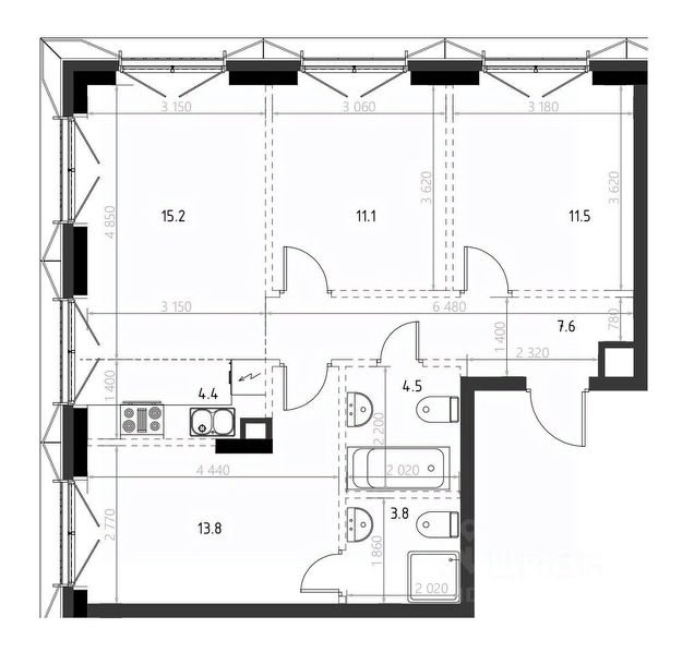 3-комнатная квартира с ремонтом и индивидуальным отоплением