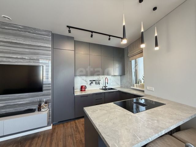 Квартира полностью мебелирована и укомплектована всем необходимым для жизни, не требует дополнительных вложений. Кухня укомплектована высококлассной техникой премиального бренда NЕFF (Германия) посудомоечной машиной, духовкой, СВЧ, холодильником.