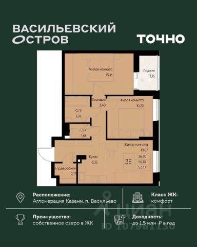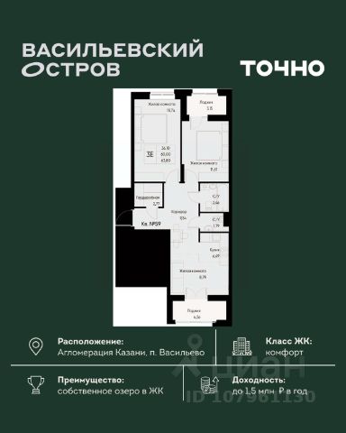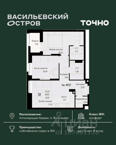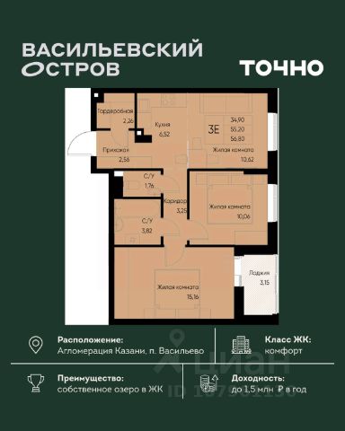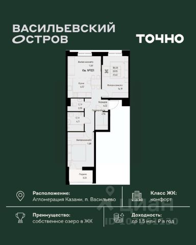 ЖК "Васильевский остров" — масштабный проект ТОЧНО в Казанской агломерации. Просторная территория 88 Га спроектирована для комфортной жизни: озеро с набережной и пляжем, каток, зелёные маршруты. В проекте комплекса — школа на 1 224 места, 2 детских сада на 680 мест, детская и взрослая поликлиники, фитнес-центр с бассейном, термальный комплекс, фермерский рынок, магазины, кафе и рестораны.