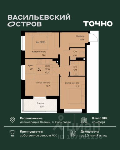 Подходит для покупки в ипотеку и за наличный расчет. Одобрим для Вас ипотеку и сопроводим всю сделку безопасно!
