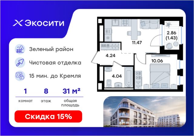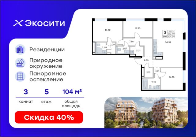 Продается 3-комн. квартира на 6-м этаже в строящемся проекте Экосити. Общая площадь лота составляет 65,97 кв. м, из которых 34,84 кв. м отведено под жилую и 13,03 кв. м под кухонную зону. Номер квартиры - 343 Преимущества квартиры в Урбан-квартале: • Квартира с полностью чистовой отделкой. В комнатах и коридоре: - натяжной потолок, - стены оклеены обоями под покраску, - полы: ламинат, плинтусы и напольная плитки - установлены межкомнатные двери и подоконники. В санузлах: - на стенах - керамогранитная плитка и/или окраска водостойкой краской - на полу - керамогранитная плитка; - натяжной потолок - сантехника: ванна и экран под ванну/душевой поддон, унитаз, раковины и смесители, монтаж водопровода и канализации - Предусмотрен расширенный пакет системы Умный Дом: бесключевой доступ в подъезд, видеодомофон с функцией Face ID, видеонаблюдение, автоматизированный сбор и передача показаний счётчиков; - На территории Урбан-квартала предусмотрено строительство детского сада на 360 мест, школы на 1501 место, детский развивающий центр на 2000 мест. - Рядом с с кварталом Резиденции запланировано строительство детского сада на 360 мест, школы с детским развивающим центром на 1501 место - На первых этажах домов Урбан-квартала запроектированы коммерческие помещения - предусмотрены места для супермаркетов, бытовых услуг, кафе. - Собственный комьюнити-центр для жителей Урбан-квартала - Клуб Резидентов для жителей квартала Резиденции - бульвар "Река между камней" с плейхабом для детей, амфитеатром, спортивными зонами, аллеей достижений. Всем посетителям будет доступен иммерсивный маршрут и AR-игры. - Тайная тропа вдоль которой расположатся зоны тихого отдыха, йоги и медитаций - 2 смотровые площадки - Снейк-ран - Круговой спортивный маршрут - Специальные зоны для выгула собак - В Урбан-квартале предусмотрено строительство 2 многоэтажных паркингов на 300 и 360 машиномест. Всем жителям проекта доступен и привычный плоскостной паркинг вокруг территории проекта с возможностью в приложении дома получить информацию о наличии парковочных мест. - В квартале Резиденции предусмотрен подземный паркинг на 260 машиномест Экосити — это совершенство города в первозданной природе. Наполненный возможностями квартал, в котором вы не выбираете между городом или природой, семьей или работой, отдыхом или спортом, — вы берете всё сразу. Каждая семья, каким бы составом она ни жила, найдет для себя идеальное пространство. Планировочные решения разнообразны, также как и возможности отделки от черновой до полностью с ремонтом. Здесь запроектированы квартиры с просторной кухней-гостиной, чтобы семья могла комфортно проводить время вместе. Квартиры сдаются с современной качественной отделкой, что позволяет после сдачи дома сразу начать жить, избежав долгих самостоятельных ремонтов. Цветовые решения и стиль отделки можно выбрать при покупке квартиры. Резиденции сдаются в черновой отделке, вы могли реализовать ваши самые смелые дизайнерские решения. Каждая резиденция это баз