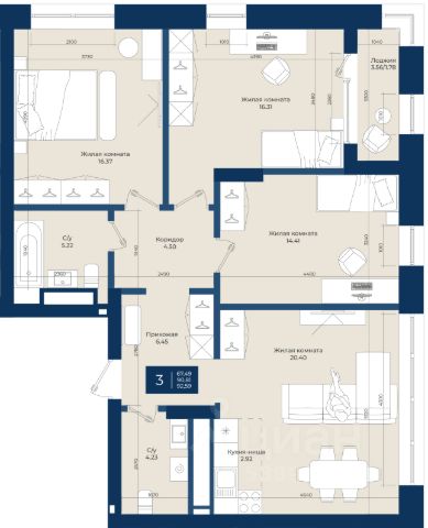 • ✓ В базе Циан 7 3-комнатных квартир на 6 этаже в микрорайоне Октябрьский городок в городе Казань