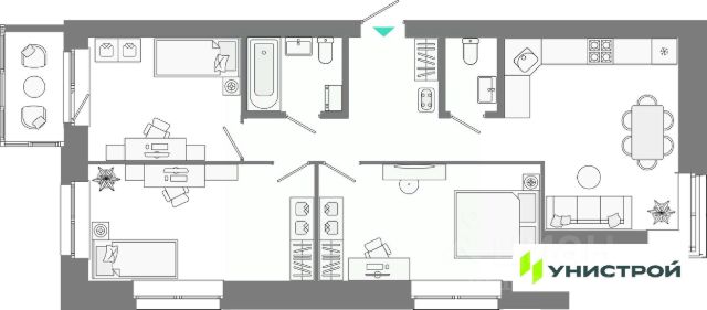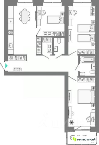 Уникум на Проспекте Победы "Уникум на Проспекте Победы" — проект от компании "Унистрой" в Казани. Жилой дом состоит из двух секций переменной высотности 7-25 этажей и гармонично вписывается в городское пространство. Жилой проект задает тренд на инклюзивную среду. Ту, в которой есть возможности для активной жизни и отдыха в пределах "Уникума". Проект отвечает ключевым запросам современного жителя большого города. Комфорт. Эстетика. И всё необходимое для успешной жизни рядом. "Уникум" — это лёгкая архитектура, стильное благоустройство и комфортное пространство для вашей жизни и отдыха. Развитый район "Уникум на Проспекте Победы" расположен в Советском районе Казани. Аэропорт находится в 25 минутах езды, ТЦ "Мега" и "Южный" в 10 минутах ходьбы, а остановка "Закиева" в двух минутах. В шаговой доступности фитнес-клубы, салоны красоты, медицинские центры и поликлиника. Для семей с детьми детский сад в доме, школы 156, 144, 167, 187 и 171 поблизости. Функциональность и эстетика "Уникум на Проспекте Победы" гармонично вписывается в городской ландшафт. Фасад в бежевых тонах с декоративным кирпичом соответствует современным требованиям к эстетике. На первых этажах коммерческие помещения для магазинов, кофеен и офисов, выполненные в едином стиле. Просторные холлы с высотой потолков 4,2 метра, подсветкой, современным дизайном и комфортной мебелью создают уютную атмосферу. Предусмотрены бесшумные скоростные лифты и колясочные с зарядками для электросамокатов. Входные группы из стекла, домофоны в теплом тамбуре, система грязезащиты и навигация обеспечивают удобство и безопасность. Френдли-среда и урбанистические тренды двора Двор "Уникума на Проспекте Победы" это френдли-среда, урбанистические тренды и баланс между отдыхом и работой. Жилой комплекс предлагает многообразие общественных пространств, а также фитнес-площадку, воркаут-зону, детские площадки для разных возрастов. Велопарковки у каждого подъезда, подземный паркинг и открытые машиноместа. Уникальные планировочные решения Жилой дом предлагает большое разнообразие планировок: студии, 1-комнатные, 2-комнатные (в том числе с европланировкой), просторные 3-комнатные. Квартиры с мастер-спальнями, гардеробными, видовые, с панорамными и угловыми окнами. Увеличенные оконные проёмы для создания светлого пространства. Лёгкое решение бытовых вопросов В "Уникуме на Проспекте Победы" обеспечивается подача чистой воды в каждую квартиру. Автоматическая передача данных учета воды, электричества и тепла в сервисную компанию через мобильное приложение. Электронные замки на входных дверях с дистанционным управлением. Паркинг "Уникум на Проспекте Победы" включает подземный паркинг со спуском на лифте. В нём 222 места для ваших автомобилей, 16 семейных и еще гостевые места. Паркинг, как и внутренний двор, охраняется и оборудован видеонаблюдением. Республика Татарстан, Казань, Проспект Победы , 001 кв.44