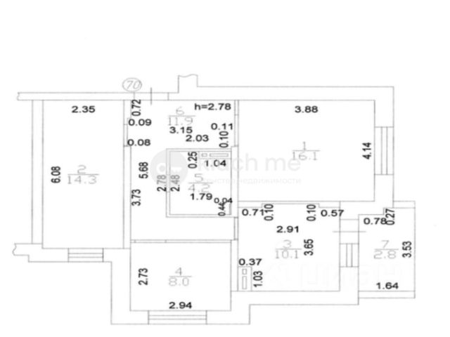 Высокие потолки 2,7м, окна пластиковый стеклопакет.
