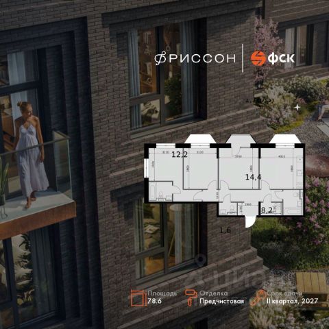 Прямая продажа от застройщика! Клубный дом бизнес-класса в самом сердце Казани, на улице Даурской. Продаётся 3-к квартира номер 368 общей площадью 78.6 кв.м. на 8-м этаже 14 этажного здания. Предчистовая отделка. Цена с учётом скидки. Особенности квартиры: - Мастер-зона с санузлом. Уют и комфорт в одном пространстве. - Угловая планировка - больше пространства для ваших идей. - Постирочная - организуйте пространство для стирки и сушки вещей. - Балкон - открытое пространство для отдыха. Квартира с предчистовой отделкой. Вам не придется заниматься черновыми и трудоёмкими работы, а чистовую отделку и дизайн - сделайте на свой вкус. Информация о комплексе: "Фриссон" - клубный дом бизнес-класса в самом сердце Казани, на улице Даурской. Лейтмотивом проекта стала музыка - её сила, гармония и способность возвышать нас над повседневностью. Подобно нотам, рождающим бесконечное множество мелодий, квартиры в "Фриссоне" создают пространство для творчества, вдохновения и личного ритма жизни. Архитектура клубного дома словно симфония: переменная высота корпусов, выразительные фасады и динамика линий создают ощущение лёгкости и движения. Свет свободно проникает во внутренние дворы и квартиры, наполняя пространство теплом и гармонией. Здесь каждый день звучит по-своему - в унисон с вашим настроением. Транспортная доступность: - 5 мин. на машине до Метро Аметьево - 8 мин. на машине до ТЦ "KazanMall" - 3 мин. пешком до школы - 1 мин. пешком до Детского сада "Фриссон" - 3 мин. до поликлиники Внутренняя инфраструктура: Гармония уюта, ритма и комфорта. Для маленьких жителей комплекса предусмотрены детские площадки с элементами музыкальной тематики, где можно играть, исследовать мир звуков и развивать творческое мышление. На территории "Фриссона" разместится двухэтажный детский сад на 80 мест - современное и безопасное пространство, где дети всегда рядом с родителями. Закрытая территория, концепция "двор без машин" и круглосуточное видеонаблюдение обеспечивают спокойствие и безопасность жителей. В каждом подъезде предусмотрены колясочные, а во дворе - велопарковки, чтобы коляски, велосипеды и самокаты всегда были под рукой. На первых этажах корпусов расположатся кафе и магазины, делающие жизнь максимально удобной. Здесь всё продумано для того, чтобы дом стал местом вдохновения, а двор - пространством, наполненным радостью и энергией жизни.