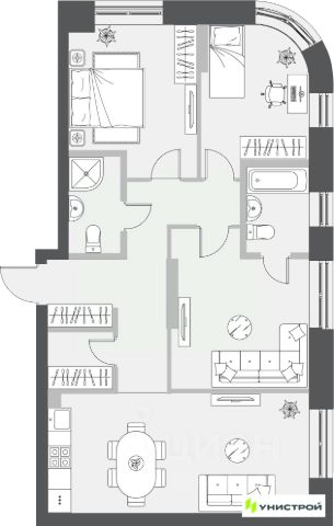 Уникум на Проспекте Победы "Уникум на Проспекте Победы" — проект от компании "Унистрой" в Казани. Жилой дом состоит из двух секций переменной высотности 7-25 этажей и гармонично вписывается в городское пространство. Жилой проект задает тренд на инклюзивную среду. Ту, в которой есть возможности для активной жизни и отдыха в пределах "Уникума". Проект отвечает ключевым запросам современного жителя большого города. Комфорт. Эстетика. И всё необходимое для успешной жизни рядом. "Уникум" — это лёгкая архитектура, стильное благоустройство и комфортное пространство для вашей жизни и отдыха. Развитый район "Уникум на Проспекте Победы" расположен в Советском районе Казани. Аэропорт находится в 25 минутах езды, ТЦ "Мега" и "Южный" в 10 минутах ходьбы, а остановка "Закиева" в двух минутах. В шаговой доступности фитнес-клубы, салоны красоты, медицинские центры и поликлиника. Для семей с детьми детский сад в доме, школы 156, 144, 167, 187 и 171 поблизости. Функциональность и эстетика "Уникум на Проспекте Победы" гармонично вписывается в городской ландшафт. Фасад в бежевых тонах с декоративным кирпичом соответствует современным требованиям к эстетике. На первых этажах коммерческие помещения для магазинов, кофеен и офисов, выполненные в едином стиле. Просторные холлы с высотой потолков 4,2 метра, подсветкой, современным дизайном и комфортной мебелью создают уютную атмосферу. Предусмотрены бесшумные скоростные лифты и колясочные с зарядками для электросамокатов. Входные группы из стекла, домофоны в теплом тамбуре, система грязезащиты и навигация обеспечивают удобство и безопасность. Френдли-среда и урбанистические тренды двора Двор "Уникума на Проспекте Победы" это френдли-среда, урбанистические тренды и баланс между отдыхом и работой. Жилой комплекс предлагает многообразие общественных пространств, а также фитнес-площадку, воркаут-зону, детские площадки для разных возрастов. Велопарковки у каждого подъезда, подземный паркинг и открытые машиноместа. Уникальные планировочные решения Жилой дом предлагает большое разнообразие планировок: студии, 1-комнатные, 2-комнатные (в том числе с европланировкой), просторные 3-комнатные. Квартиры с мастер-спальнями, гардеробными, видовые, с панорамными и угловыми окнами. Увеличенные оконные проёмы для создания светлого пространства. Лёгкое решение бытовых вопросов В "Уникуме на Проспекте Победы" обеспечивается подача чистой воды в каждую квартиру. Автоматическая передача данных учета воды, электричества и тепла в сервисную компанию через мобильное приложение. Электронные замки на входных дверях с дистанционным управлением. Паркинг "Уникум на Проспекте Победы" включает подземный паркинг со спуском на лифте. В нём 222 места для ваших автомобилей, 16 семейных и еще гостевые места. Паркинг, как и внутренний двор, охраняется и оборудован видеонаблюдением. Республика Татарстан, Казань, Проспект Победы , 001 кв.55