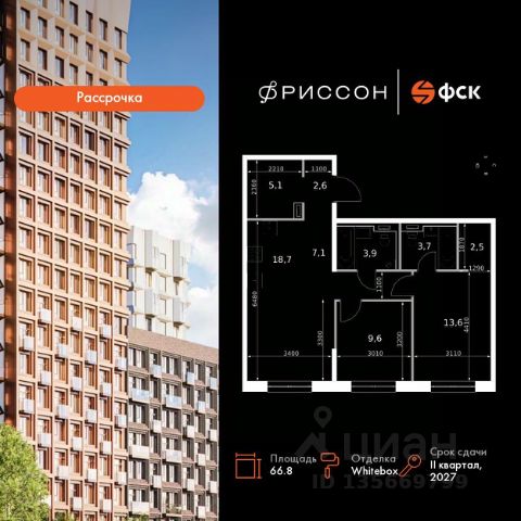 Прямая продажа от застройщика! Жилой Комплекс бизнес-класса. Продаётся 3-к квартира номер 342 общей площадью 68 кв.м. на 5-м этаже 14 этажного здания. Отделка Whitebox. Цена с учётом скидки. Особенности квартиры: - Мастер-зона с санузлом. Уют и комфорт в одном пространстве. - Угловая планировка - больше пространства для ваших идей. - Евроформат - просторное и удобное жилье с отличной планировкой. - Балкон - открытое пространство для отдыха. Квартира с предчистовой отделкой (White box). Вам не придется заниматься черновыми и трудоёмкими работы, а чистовую отделку и дизайн - сделайте на свой вкус. Информация о комплексе: "Фриссон" - клубный дом бизнес-класса в самом сердце Казани, на улице Даурской. Лейтмотивом проекта стала музыка - её сила, гармония и способность возвышать нас над повседневностью. Подобно нотам, рождающим бесконечное множество мелодий, квартиры в "Фриссоне" создают пространство для творчества, вдохновения и личного ритма жизни. Архитектура клубного дома словно симфония: переменная высота корпусов, выразительные фасады и динамика линий создают ощущение лёгкости и движения. Свет свободно проникает во внутренние дворы и квартиры, наполняя пространство теплом и гармонией. Здесь каждый день звучит по-своему - в унисон с вашим настроением. Транспортная доступность: - 5 мин. на машине до Метро Аметьево - 8 мин. на машине до ТЦ "KazanMall" - 3 мин. пешком до школы - 1 мин. пешком до Детского сада "Фриссон" - 3 мин. до поликлиники Внутренняя инфраструктура: Гармония уюта, ритма и комфорта. Для маленьких жителей комплекса предусмотрены детские площадки с элементами музыкальной тематики, где можно играть, исследовать мир звуков и развивать творческое мышление. На территории "Фриссона" разместится двухэтажный детский сад на 80 мест - современное и безопасное пространство, где дети всегда рядом с родителями. Закрытая территория, концепция "двор без машин" и круглосуточное видеонаблюдение обеспечивают спокойствие и безопасность жителей. В каждом подъезде предусмотрены колясочные, а во дворе - велопарковки, чтобы коляски, велосипеды и самокаты всегда были под рукой. На первых этажах корпусов расположатся кафе и магазины, делающие жизнь максимально удобной. Здесь всё продумано для того, чтобы дом стал местом вдохновения, а двор - пространством, наполненным радостью и энергией жизни. 3-комнатная квартира в ипотеку рядом с метро Аметьево.
