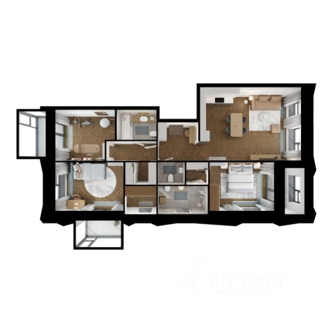 Хороший ремонт, светлая кухня с новым гарнитуром и техникой (посудомоечная машина, духовой шкаф, встроенная варочная панель), 3 комнаты, просторная гардеробная, раздельный санузел, застекленная лоджия и балкон.