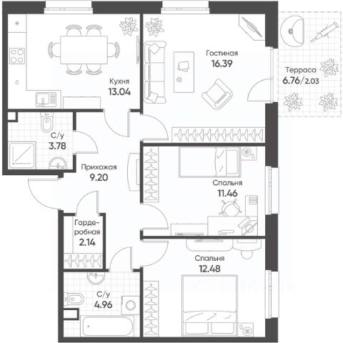 Продаётся 3-комнатная квартира в сданном доме (Корпус 2), срок сдачи: III-кв. 2025, общей площадью 76.4 кв.м., на 3 этаже. Новый жилой комплекс "Счастье" от застройщика "Группа Эталон" расположен по адресу город Казань, улица Гаврилова.