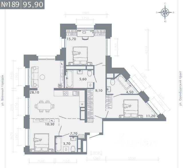 Продаётся 3-комнатная квартира в строящемся доме (Корпус 1), срок сдачи: II-кв. 2028, общей площадью 94.9 кв.м., на 3 этаже. Новый жилой комплекс "Оригана" от застройщика "КамаСтройИнвест" расположен по адресу: Россия, Республика Татарстан, Казань, улица Оренбургский Тракт
