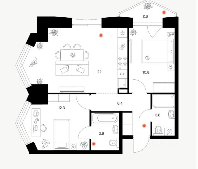 В "Q на Кулагина" предлагаются квартиры с террасами, евроварианты с просторными кухнями-гостиными, мастер-спальнями с ванными и гардеробными, тёплыми лоджиями и эркерами. На верхних этажах террасы позволяют любоваться видом на Волгу и Гребной канал.