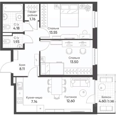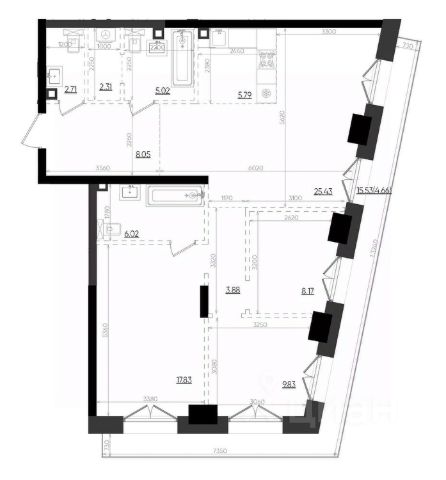 • ✓ В базе Циан 1 3-комнатных квартир в кирпично-монолитном доме на улице Дулата Али в городе Казань