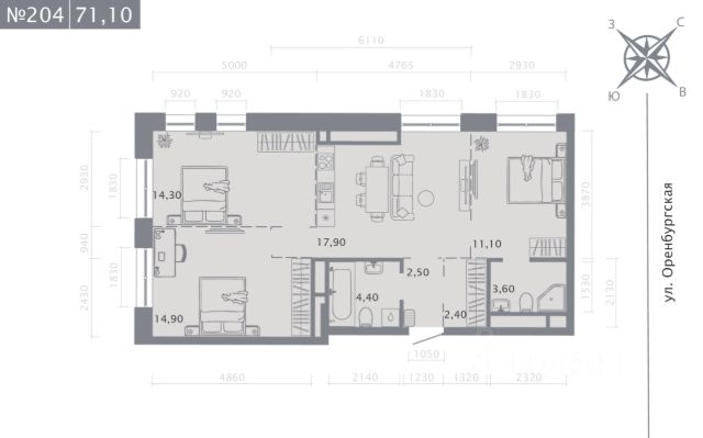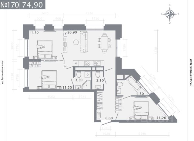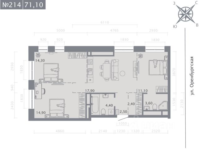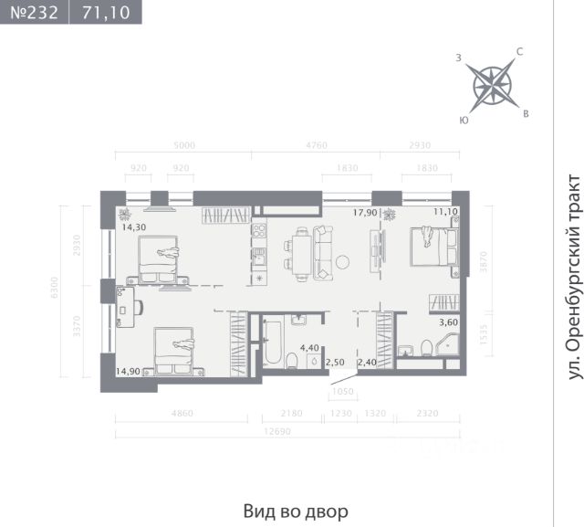 Продаётся 3-комнатная квартира в строящемся доме (Корпус 2 (2 этап)), срок сдачи: IV-кв. 2028, общей площадью 74.9 кв.м., на 2 этаже. Новый жилой комплекс "Оригана" от застройщика "КамаСтройИнвест" расположен по адресу: Россия, Республика Татарстан, Казань, улица Оренбургский Тракт