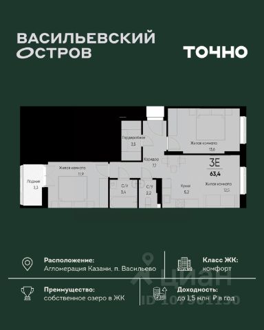• ✓ В базе Циан 265 3-комнатных квартир в кирпично-монолитном доме в Зеленодольском районе республики Татарстан