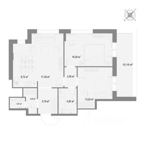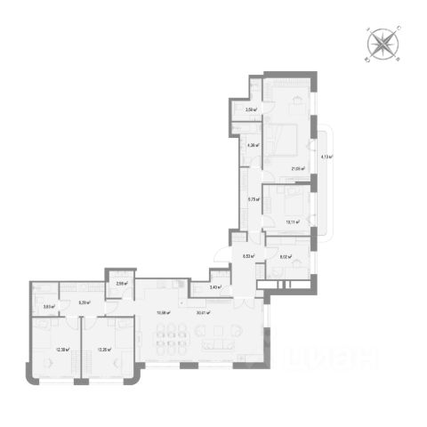 Предусмотрена свободная планировка. Окна выходят на юго-восток и северо-запад.