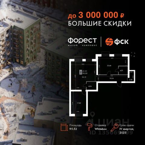 Прямая продажа от застройщика! Корпус 1.1 сдан! Жилой Комплекс комфорт-класса. Продаётся 3-к квартира номер 31 общей площадью 69.3 кв.м. на 6-м этаже 6 этажного здания. Отделка Whitebox. Цена с учётом скидки. Особенности квартиры: - Мастер-зона с санузлом. Уют и комфорт в одном пространстве. - Угловая планировка - больше пространства для ваших идей. - Евроформат - просторное и удобное жилье с отличной планировкой. - Балкон - открытое пространство для отдыха. - Большой балкон - больше пространства для вашего отдыха. Квартира с предчистовой отделкой (White box). Вам не придется заниматься черновыми и трудоёмкими работы, а чистовую отделку и дизайн - сделайте на свой вкус. Информация о комплексе: "Форест" - жилой комплекс комфорт-класса, созданный для тех, кто ищет гармонию с природой, не отказываясь от городского ритма. Расположенный в окружении леса и реки, он воплощает мечту о загородной жизни со всеми удобствами города. Здесь можно проживать самые тёплые моменты с близкими, дышать свежим хвойным воздухом, встречать утро на собственной террасе или проводить вечера с друзьями под открытым небом. Благоустроенная территория, прогулочные дорожки и зоны отдыха создают атмосферу уюта и гармонии. Поблизости - лес и Волга, куда можно выбраться на прогулку в любое время, не дожидаясь выходных. Благодаря вечнозелёным растениям и продуманному озеленению, дворы остаются зелёными круглый год. Транспортная доступность: - 4 мин. пушком до автобусной остановки - 5 мин. на машине до школы Внутренняя инфраструктура: Продуманное пространство для жизни, отдыха и развития. На территории комплекса работает собственный детский сад - современное и безопасное пространство, где дети всегда рядом с родителями. Во дворе установлены игровые комплексы для активных прогулок и развития малышей на свежем воздухе. Жителям доступны кафе и магазины, площадки для прогулок с питомцами, зоны для пикников и барбекю. Для любителей активного образа жизни предусмотрены велодорожки, воркаут-зоны и тропы для хайкинга, а в шаговой доступности находятся планетарий и глэмпинг. Просторный двор без машин и закрытая территория с системой контроля доступа обеспечивают высокий уровень безопасности и приватности. Здесь можно по-настоящему расслабиться и чувствовать себя дома - в окружении природы, комфорта и заботы о каждом дне.