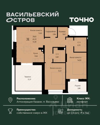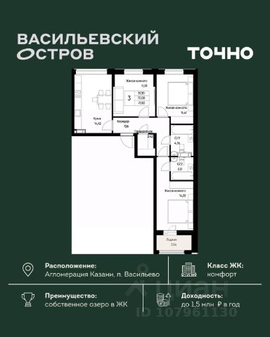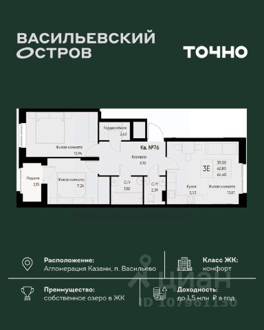 ЖК "Васильевский остров" — масштабный проект ТОЧНО в Казанской агломерации. Просторная территория 88 Га спроектирована для комфортной жизни: озеро с набережной и пляжем, каток, зелёные маршруты. В проекте комплекса — школа на 1 224 места, 2 детских сада на 680 мест, детская и взрослая поликлиники, фитнес-центр с бассейном, термальный комплекс, фермерский рынок, магазины, кафе и рестораны.