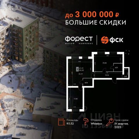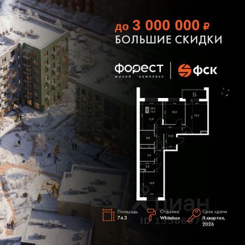 Прямая продажа от застройщика! Жилой Комплекс комфорт-класса. Продаётся 3-к квартира номер 85 общей площадью 74.4 кв.м. на 5-м этаже 6 этажного здания. Отделка Whitebox. Цена с учётом скидки. Особенности квартиры: Квартира с предчистовой отделкой (White box). Вам не придется заниматься черновыми и трудоёмкими работы, а чистовую отделку и дизайн - сделайте на свой вкус. Информация о комплексе: "Форест" - жилой комплекс комфорт-класса, созданный для тех, кто ищет гармонию с природой, не отказываясь от городского ритма. Расположенный в окружении леса и реки, он воплощает мечту о загородной жизни со всеми удобствами города. Здесь можно проживать самые тёплые моменты с близкими, дышать свежим хвойным воздухом, встречать утро на собственной террасе или проводить вечера с друзьями под открытым небом. Благоустроенная территория, прогулочные дорожки и зоны отдыха создают атмосферу уюта и гармонии. Поблизости - лес и Волга, куда можно выбраться на прогулку в любое время, не дожидаясь выходных. Благодаря вечнозелёным растениям и продуманному озеленению, дворы остаются зелёными круглый год. Транспортная доступность: - 4 мин. пушком до автобусной остановки - 5 мин. на машине до школы Внутренняя инфраструктура: Продуманное пространство для жизни, отдыха и развития. На территории комплекса работает собственный детский сад - современное и безопасное пространство, где дети всегда рядом с родителями. Во дворе установлены игровые комплексы для активных прогулок и развития малышей на свежем воздухе. Жителям доступны кафе и магазины, собственный SPA-центр, площадки для прогулок с питомцами, зоны для пикников и барбекю. Для любителей активного образа жизни предусмотрены велодорожки, воркаут-зоны и тропы для хайкинга, а в шаговой доступности находятся планетарий и глэмпинг. Просторный двор без машин и закрытая территория с системой контроля доступа обеспечивают высокий уровень безопасности и приватности. Здесь можно по-настоящему расслабиться и чувствовать себя дома - в окружении природы, комфорта и заботы о каждом дне.