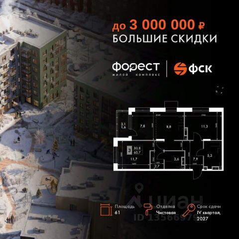 Продаётся 3-комн. квартира площадью 97,7 кв.м на 5 этаже 26 этажного дома (Корпус 3, Секция 5) проекта ПИК Сиберово. Светлый просторный подъезд на уровне земли, функциональная планировка, большие окна, предчистовая отделка. "Сиберово" - жилой квартал на улице Журналистов с парками в каждом дворе, школой и двумя детскими садами. До центра Казани - 15 минут пути на машине. Переменная высота домов от 7 до 26 этажей создаёт ощущение простора, а солнечному свету позволяет беспрепятственно проникать во дворы и квартиры. С верхних этажей откроется панорамный вид на реку Казанку, "Ак Барс Арену" и центр семьи "Казан". Жилой квартал отметили на форуме "Казаныш", где награждают лучшие архитектурные проекты Казани. В 2023 году проект оказался в двух номинациях: "Лучшее благоустройство территорий" и "Лучшая архитектурно-градостроительная подсветка". В "Сиберово" будет всё необходимое для комфортной жизни: на первых этажах разместятся магазины, кафе и полезные сервисы. Внутри жилого квартала запланировано строительство школы и двух детских садов. Для удобства жителей будут подземные паркинги в каждом доме, четыре наземных многоуровневых паркинга, индивидуальные кладовые и колясочные. В каждом дворе будет парк - тихое приватное пространство для жителей, где можно расслабиться после рабочего дня. Здесь красиво и уютно в любое время года. Через весь квартал протянется широкий пешеходный бульвар с велодорожками, велопарковками, зонами для отдыха, детскими и спортивными площадками. Входы в подъезды в "Сиберово" сделаны на уровне земли: по территории квартала удобно перемещаться и пешком, и на самокате, и с коляской. Первые этажи просторные и светлые: панорамное остекление пропускает много естественного света, а высота потолков доходит до пяти метров. Все квартиры сдаются в предчистовой отделке: с ровными белыми стенами, готовой гидроизоляцией, стяжкой полов, разводкой систем отопления, с окнами с надёжным пластиковым профилем. Вам останется только выбрать цвета и материалы для косметического ремонта, чтобы оформить квартиру на свой вкус. Вокруг "Сиберово" развитый район города: рядом детские сады, школы, колледж, поликлиники и торговые центры. До центра отсюда всего 15 минут на машине. Артикул 1025640 (Застройщик ООО "СЗ МТ ДЕВЕЛОПМЕНТ")