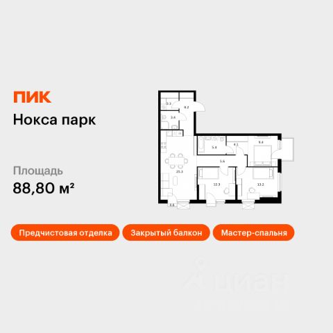 Продаётся 3-комн. квартира площадью 87,8 кв.м на 3 этаже 17 этажного дома (Корпус 9, Секция 1) проекта ПИК Нокса парк. Светлый просторный подъезд на уровне земли, функциональная планировка, большие окна, предчистовая отделка. Жилой квартал "Нокса парк" находится в Советском районе, где много лесов и парков. До центра Казани всего 20 минут на машине. В 2024 году совсем рядом появится благоустроенная набережная реки Ноксы. "Нокса парк" - уютный проект, в который входит 10 домов, детский сад, школа и многоуровневые паркинги. В 2023 году был отмечен на форуме "Казаныш", где награждают лучшие архитектурные проекты Казани: детский сад в квартале занял третье место в категории "Лучший социальный объект". Отделка первых этажей выполнена из клинкерного кирпича — износостойкого материала, который хорошо переносит перепады температур. На нижнем этаже откроются кафе, магазины и другие сервисы — чтобы купить кофе к завтраку или пиццу на ужин, можно будет просто спуститься на лифте. На подземном этаже будут кладовые для крупных и сезонных вещей, а на первом этаже — комната для хранения колясок. В каждом доме будут светлые и просторные подъезды с двумя выходами: во двор и на улицу. На входе в подъезды мы установим IP-домофоны, которыми можно управлять через приложение на смартфоне. Можно настроить домофон так, чтобы он узнавал жителей в лицо и автоматически открывал дверь перед вами - очень удобно, если вы возвращаетесь домой с пакетами. Все квартиры будут с предчистовой отделкой: с ровными белыми стенами, готовой гидроизоляцией, стяжкой полов, разводкой систем отопления, надёжными и долговечными окнами с пластиковым профилем. Вам останутся только декоративные работы, и вы сможете оформить квартиру на свой вкус. В одном из корпусов доступны квартиры с собственными террасами. Из каждого дома будет выход в уютный двор-парк: это закрытая территория для отдыха, где растут цветы и деревья, есть зона для спокойного отдыха, детские и спортивные площадки. Здесь можно читать книгу на скамейке, заниматься йогой и найти ещё десятки интересных занятий для взрослых и детей. Также в жилом квартале будет пешеходный бульвар, по которому приятно гулять или кататься на велосипеде, роликах, скейтборде. В районе рядом с "Нокса парком" работают школы, детские сады, поликлиника, кафе, продуктовые магазины. Для жителей города неподалёку также откроется физкультурно-оздоровительный комплекс. За 15 минут можно доехать до ТРЦ "МЕГА". Для прогулок подойдут парки "Весна" и "Ак Таш", Горкинско-Ометьевский лес и благоустроенная набережная реки Ноксы. В проекте открыт шоурум. Все квартиры с готовым ремонтом в нейтральных тонах, они обставлены мебелью по проектам дизайнеров. Артикул 957976 (Застройщик АО "СЗ" АЛТЫН")