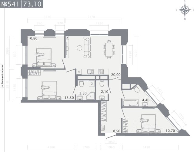 Первый этаж : большая кухня-гостиная 50кв. м, прихожая и санузел гостевой с душевой кабиной. Второй этаж две просторные спальни, небольшая гардеробная и большой хозяйский санузел с ванной. На первом и втором этажах кондиционеры, в ванной водонагреватель. На кухне , санузле и балконах тёплые полы !