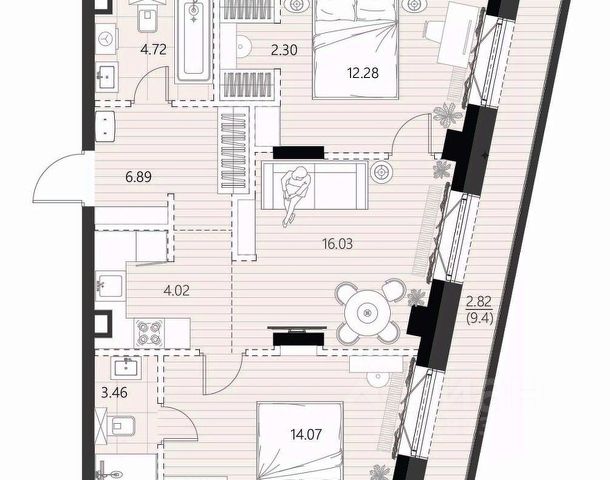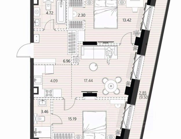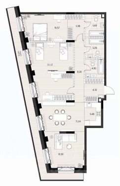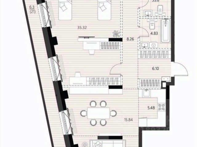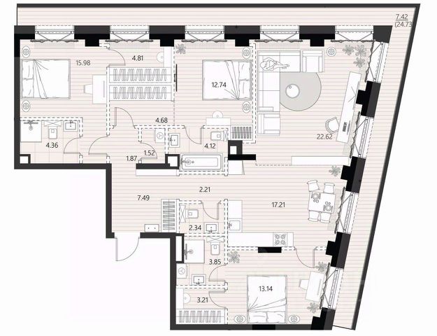 Квартира площадью 74,02 м² со свободной планировкой, панорамные окна с видом на Волгу (сллнечная сторона), высокие потолки, централизованная система кондиционирования, многоуровневая система очистки воды, мастер спальня.