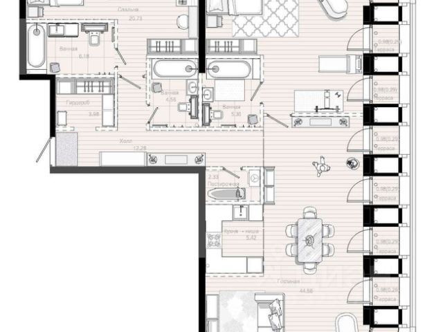 Продается 3-комнатная квартира 29 площадью 67,12 кв.м на 5 этаже проекта "Дом на Исхаки" от "Ак Барс Дом". Купить квартиру можно в ипотеку со ставкой от 4,5%. "Дом на Исхаки" новый жилой комплекс бизнес-класса в историческом центре Казани. Для тех, кто хочет жить в сердце мегаполиса, и при этом сохранить атмосферу приватности. В доме всего 56 квартир. ЖК расположен недалеко от Кремля в окружении необходимой инфраструктуры: в пешей доступности бизнес-центры, Академический лицей им. Лобачевского и другие школы, федеральные университеты, детские сады, Большой драматический театр, ЦУМ, ТРК "Кольцо", спортивные и медицинские центры. Проект "Дом на Исхаки" это премиальный комфорт. Уютный двор с детской площадкой и возможностями для спокойного отдыха, подземный паркинг с современной системой охраны и удобным заездом по считыванию номеров. Эффектная входная группа впечатляет: художественная подсветка фасадов, панорамное остекление, лаунж-зоны с мягкими диванами, система антиобледенения при входе. Вместительная колясочная и гостевой санузел в холле. В проекте высокие потолки до 3 м и до 4,4 м на мансардном этаже, просторные видовые террасы. Увеличенные окна и стекла с нанонапылением повышают шумоизоляцию, делают жилое пространство светлее и теплее, помогают сократить расходы на отопление. В просторной 3-комнатной квартире есть всё необходимое для большой семьи. Кухня площадью 13 кв. м. для обедов и ужинов за большим столом, функциональная прихожая, 2 санузла, высокие 3-метровые потолки и 3 отдельные комнаты для личного пространства всех домочадцев. В проекте предусмотрены места для хранения, чтобы не думать, где складывать одежду и бытовые принадлежности. В двух комнатах есть собственный выход на балкон. Здесь по утрам за чашечкой чая или кофе вы сможете наслаждаться жизнью в центральной части Казани. Видеонаблюдение по периметру дома, в лифтах, в подъезде и на парковке. Система IP-домофонии с функцией Face-ID. В квартиры установлены стильные вызывные панели со встроенной камерой. Через приложение вы можете наблюдать, что происходит перед дверью квартиры и удаленно открывать дверь в подъезде своим гостям. Мы сделали все, чтобы придать Вашей мечте форму дома. Дом там, где мы. Купить 3-комнатную квартиру в новостройке в районе Вахитовский в городе Казань.