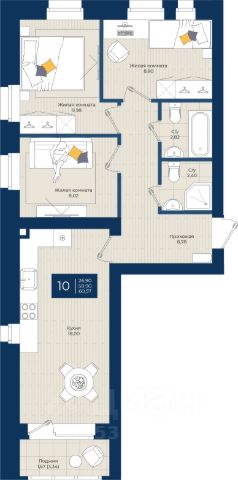Продаётся 3-комнатная квартира в строящемся доме (дом 1), срок сдачи: III-кв. 2026, общей площадью 60.57 кв.м., на 2 этаже.