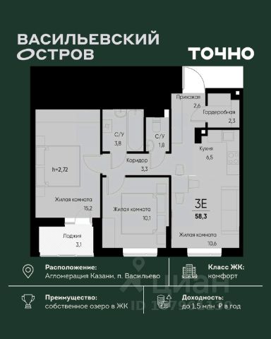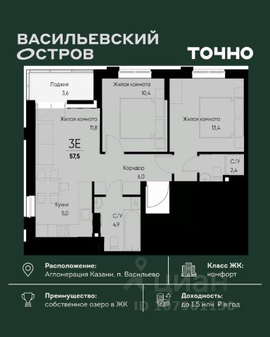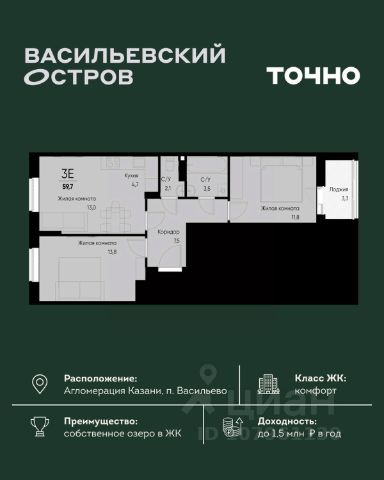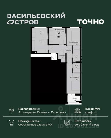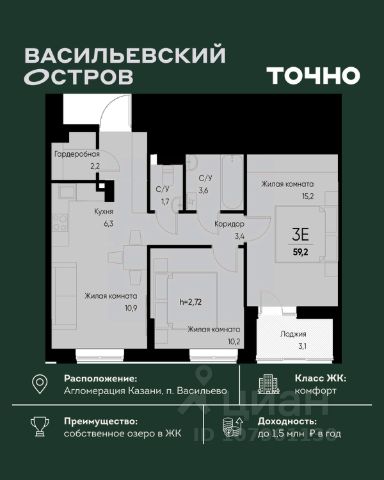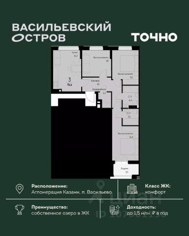 ЖК "Васильевский остров" — масштабный проект ТОЧНО в Казанской агломерации. Просторная территория 88 Га спроектирована для комфортной жизни: озеро с набережной и пляжем, каток, зелёные маршруты. В проекте комплекса — школа на 1 224 места, 2 детских сада на 680 мест, детская и взрослая поликлиники, фитнес-центр с бассейном, термальный комплекс, фермерский рынок, магазины, кафе и рестораны.