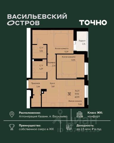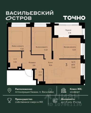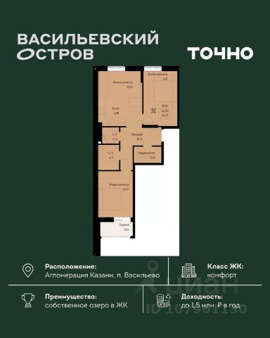 Начните новую жизнь в ритме большого города и в балансе с природой! Продается 3-комнатная квартира с отделкой в Зеленодольском районе республики Татарстан.