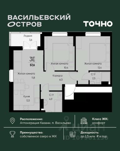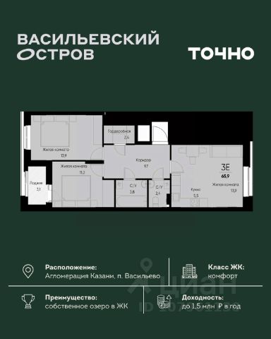 ЖК "Васильевский остров" — масштабный проект ТОЧНО в Казанской агломерации. Просторная территория 88 Га спроектирована для комфортной жизни: озеро с набережной и пляжем, каток, зелёные маршруты. В проекте комплекса — школа на 1 224 места, 2 детских сада на 680 мест, детская и взрослая поликлиники, фитнес-центр с бассейном, термальный комплекс, фермерский рынок, магазины, кафе и рестораны.