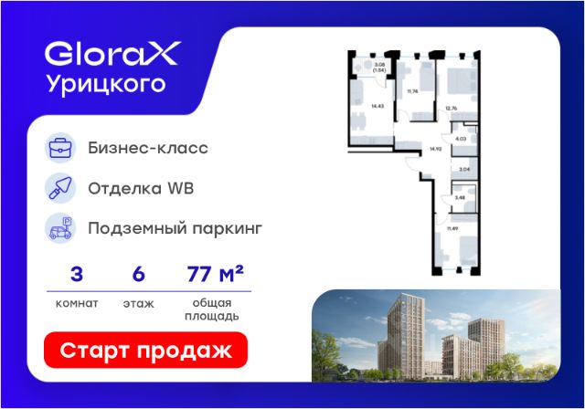 Продается 3-комн. квартира на 2-м этаже в квартале бизнес-класса GloraX Урицкого. Общая площадь лота составляет 67,72 кв. м, из которых 32,04 кв. м отведено под жилую и 21,59 кв. м под кухонную зону. Номер квартиры - 513 GloraX Урицкого это идеальное сочетание динамики мегаполиса и камерности района, где каждое утро начинается легко, а каждый вечер наполнен ощущением дома Преимущества квартиры: просторная квартира с 3 спальнями и кухней-гостиной; угловая; мастер-спальня; остекленная лоджия; 2 балкона; вид на улицу и во двор. Преимущества, которые изменят вашу жизнь: • Собственная инфраструктура: Всё для комфорта и досуга, не выходя за территорию проекта • Безопасность 24/7: Закрытая территория, видеонаблюдение, система "Умный дом" • Безбарьерная среда: Забота о каждом жителе, независимо от возраста • Футуристичные лобби: Эстетика и комфорт с первых шагов в вашем доме. • Колясочные в каждой секции: Больше пространства в ваших квартирах • Квартиры в отделке White Box: Готовый холст для реализации дизайнерских идей. • Благоустройство в стиле лесопарка: эко-пространство, где природа становится частью повседневной жизни. GloraX Урицкого это проект бизнес-класса для тех, кто живёт в ритме большого города, но ждёт безмятежности у себя дома. Здесь всё важное происходит рядом с вами: работа, встречи, спортивные и культурные активности, прогулки, образование и обучение. Здесь вы ощутите, что вы наконец-то дома — в доме, которого давно ждали. Стоимость действительна при 100% оплате или стандартной ипотеке.