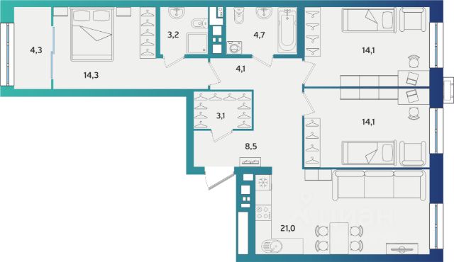 Продаётся 3-комнатная квартира в строящемся доме (Дом А-4.2), срок сдачи: IV-кв. 2026, общей площадью 73.42 кв.м., на 9 этаже. Новый жилой комплекс "Экополис А4-1" от застройщика "ГК АСПЭК-Домстрой" расположен по адресу город Альметьевск, Объездная улица.