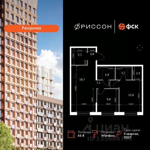 Прямая продажа от застройщика! Жилой Комплекс бизнес-класса. Продаётся 3-к квартира номер 333 общей площадью 78.5 кв.м. на 3-м этаже 14 этажного здания. Отделка Whitebox. Цена с учётом скидки. Особенности квартиры: - Мастер-зона с санузлом. Уют и комфорт в одном пространстве. - Угловая планировка - больше пространства для ваших идей. - Постирочная - организуйте пространство для стирки и сушки вещей. - Балкон - открытое пространство для отдыха. Квартира с предчистовой отделкой (White box). Вам не придется заниматься черновыми и трудоёмкими работы, а чистовую отделку и дизайн - сделайте на свой вкус. Информация о комплексе: "Фриссон" - клубный дом бизнес-класса в самом сердце Казани, на улице Даурской. Лейтмотивом проекта стала музыка - её сила, гармония и способность возвышать нас над повседневностью. Подобно нотам, рождающим бесконечное множество мелодий, квартиры в "Фриссоне" создают пространство для творчества, вдохновения и личного ритма жизни. Архитектура клубного дома словно симфония: переменная высота корпусов, выразительные фасады и динамика линий создают ощущение лёгкости и движения. Свет свободно проникает во внутренние дворы и квартиры, наполняя пространство теплом и гармонией. Здесь каждый день звучит по-своему - в унисон с вашим настроением. Транспортная доступность: - 5 мин. на машине до Метро Аметьево - 8 мин. на машине до ТЦ "KazanMall" - 3 мин. пешком до школы - 1 мин. пешком до Детского сада "Фриссон" - 3 мин. до поликлиники Внутренняя инфраструктура: Гармония уюта, ритма и комфорта. Для маленьких жителей комплекса предусмотрены детские площадки с элементами музыкальной тематики, где можно играть, исследовать мир звуков и развивать творческое мышление. На территории "Фриссона" разместится двухэтажный детский сад на 80 мест - современное и безопасное пространство, где дети всегда рядом с родителями. Закрытая территория, концепция "двор без машин" и круглосуточное видеонаблюдение обеспечивают спокойствие и безопасность жителей. В каждом подъезде предусмотрены колясочные, а во дворе - велопарковки, чтобы коляски, велосипеды и самокаты всегда были под рукой. На первых этажах корпусов расположатся кафе и магазины, делающие жизнь максимально удобной. Здесь всё продумано для того, чтобы дом стал местом вдохновения, а двор - пространством, наполненным радостью и энергией жизни.