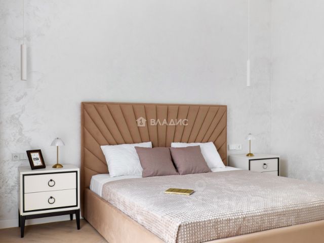 Дизайн квартиры выполнен в современном стиле с использованием дорогих натуральных материалов. В квартире предусмотрены гостиная, кухня-столовая, хозяйская спальня с ванной комнатой и гардеробом, вторая спальная комната с гардеробом, гостевой санузел, постирочная со встроенной стиральной и сушильной машиной, а также гардеробная при входе. Для удобства проживания в квартире есть система "умный дом", который позволяет управлять с телефона всей квартирой и не переживать о безопасности жилья в отсутствие хозяев. Квартира оснащена техникой премиального качества.
