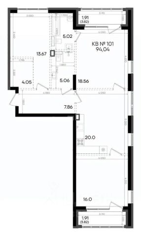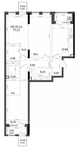 Возможность расширения пространства за счет демонтажа стены между спальней и кухней