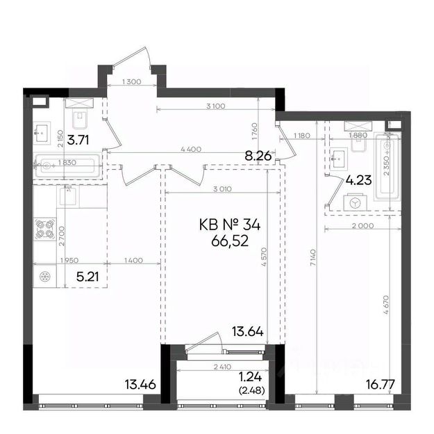 ~ Кухня (8,4 м²): Просторная, с окнами на юг.