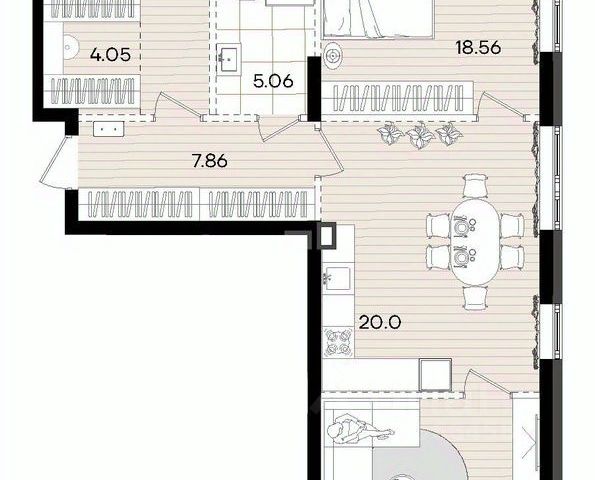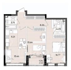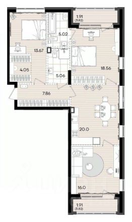 ~ Гостиная (15,2 м²): С выходом на просторную лоджию 6 м².