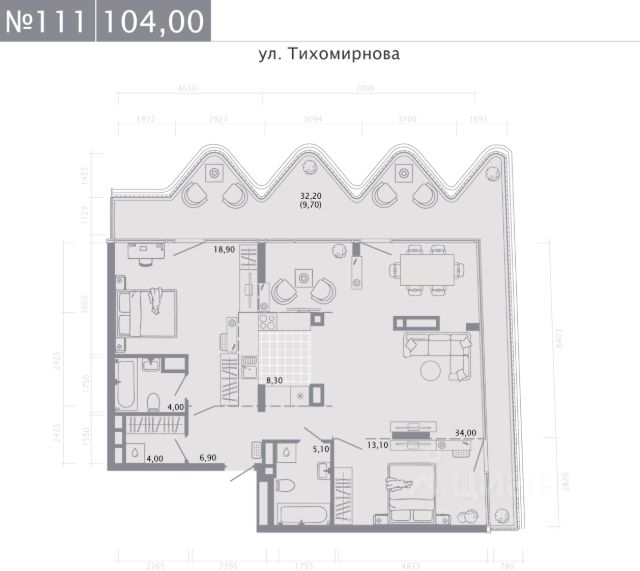 Продается четырехкомнатная квартира общей площадью 122.6 м2