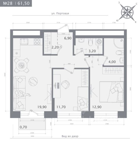 Продаётся 2-комнатная квартира в строящемся доме (Дом 1), срок сдачи: IV-кв. 2027, общей площадью 61.5 кв.м., на 7 этаже.